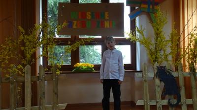 Wielki finał XI Powiatowego Konkursu „Wiosenne Przebudzenie” odbył się, wzorem lat ubiegłych, w Murowanej Goślinie 11 kwietnia. W szranki o krasomówczy laur stanęli uczniowie szkół podstawowych i gimnazjów powiatu poznańskiego, zwycięscy konkursów gminnych. Reprezentowanych było osiem gmin: Stęszew, Dopiewo, Murowana Goślina, Suchy Las, Tarnowo Podgórne, Mosina, Czerwonak i Pobiedziska. Jury miało w tym roku trudne zadanie, gdyż poziom uczestników był bardzo wysoki i wyrównany. Ostatecznie w kategorii wiekowej uczniów klas I-III Piotr Szymiec (kl. IIIA ) zajął drugie miejsce doskonale interpretując wiersz Ludwika Jerzego Kerna „Marek od koparek”. Zdobywcy trzech pierwszych miejsc i wyróżnień otrzymali bony do wykorzystania w Empiku oraz nagrody rzeczowe i dyplomy. Piotrowi życzymy udanych zakupów i dalszych sukcesów.