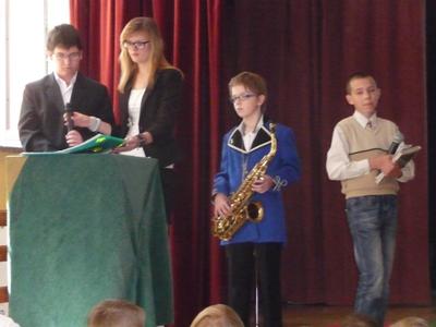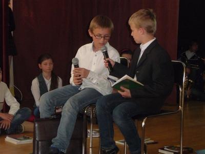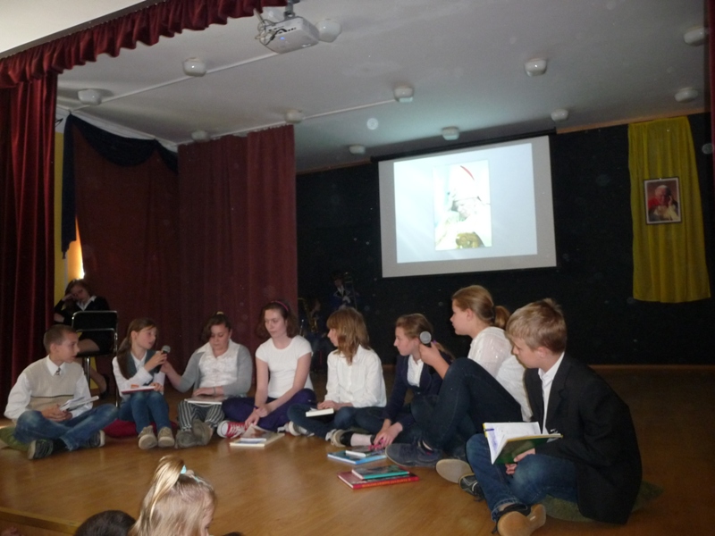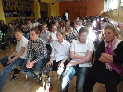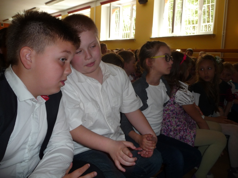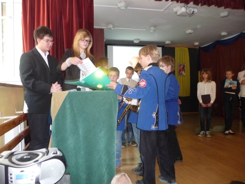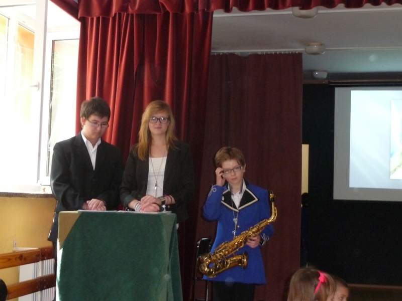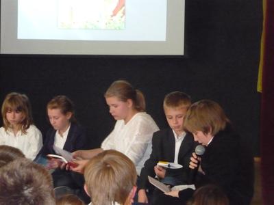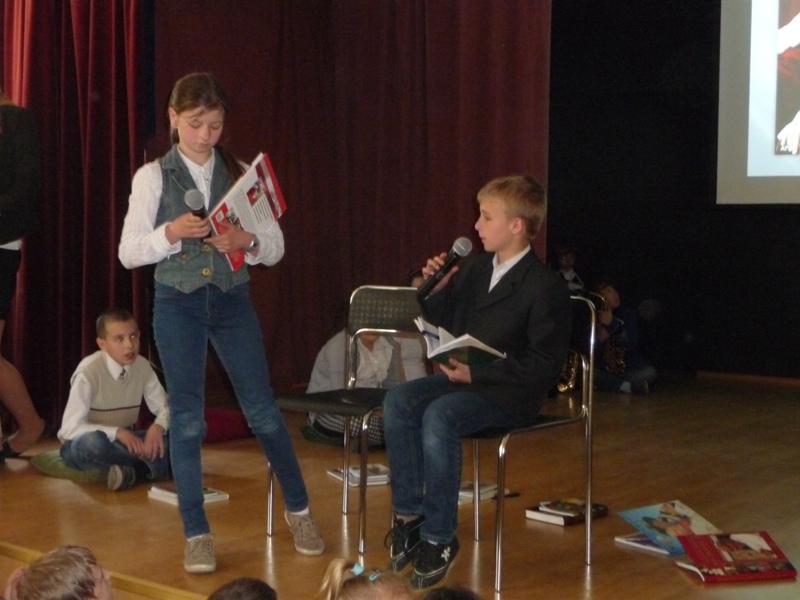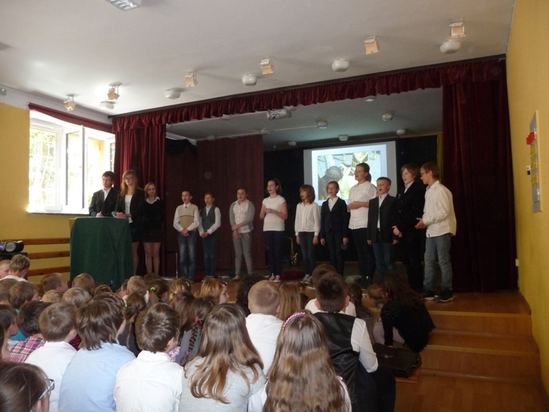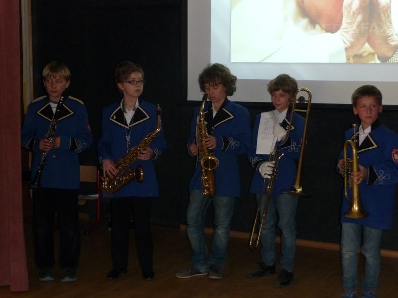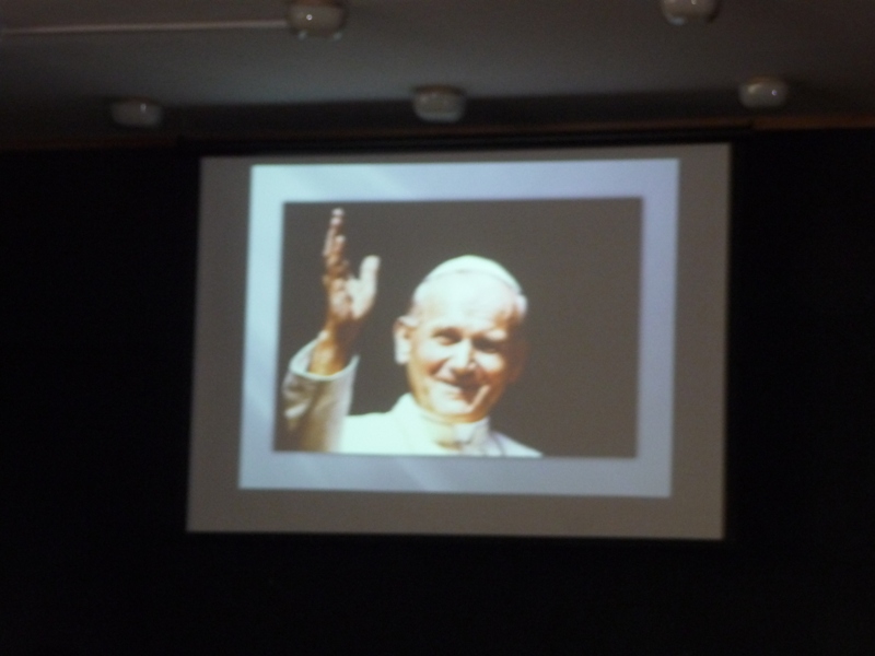 Dnia 30 kwietnia w naszej szkole odbyła się uroczystość z okazji kanonizacji Jana Pawła II. Uczniowie z klasy V, pod kierunkiem pani Agnieszki Olejniczak, ukazali nam drogę papieża- Jana Pawła II- do świętości. Papież kochał i szanował wszystkich ludzi. Każdy człowiek był dla niego jedyny i niepowtarzalny. Wzywał ludzi do działania i sprzeciwiania się złu. „Nie lękajcie się”- te słowa dały ludziom nadzieję na lepsze życie w Polsce. Z przesłaniem pokoju i Bożej miłości papież podróżował po całym świecie. Niósł Boga rodzinom, dzieciom, młodzieży, biednym i bezdomnym. Miał serce otwarte na wszystkie problemy i cierpienia. Dziękujemy za wspomnienie Wielkiego Rodaka Papieża Jana Pawła II.