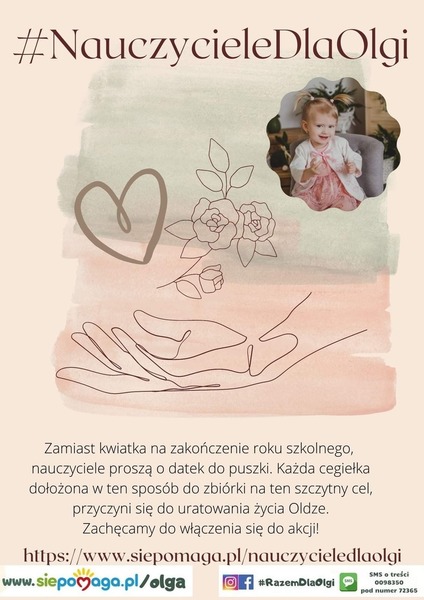 od kilkunastu tygodni setki osób jest zaangażowanych w zbiórkę pieniędzy dla Olgi Miśkiewicz, maleńkiej dziewczynki, której życie zależy od zebrania funduszy na...